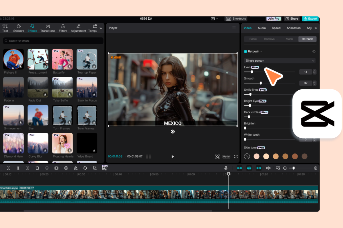 - Thêm hiệu ứng thông minh: CapCut AI tự động gợi ý hiệu ứng chuyển cảnh, bộ lọc màu và âm thanh phù hợp với nội dung video.